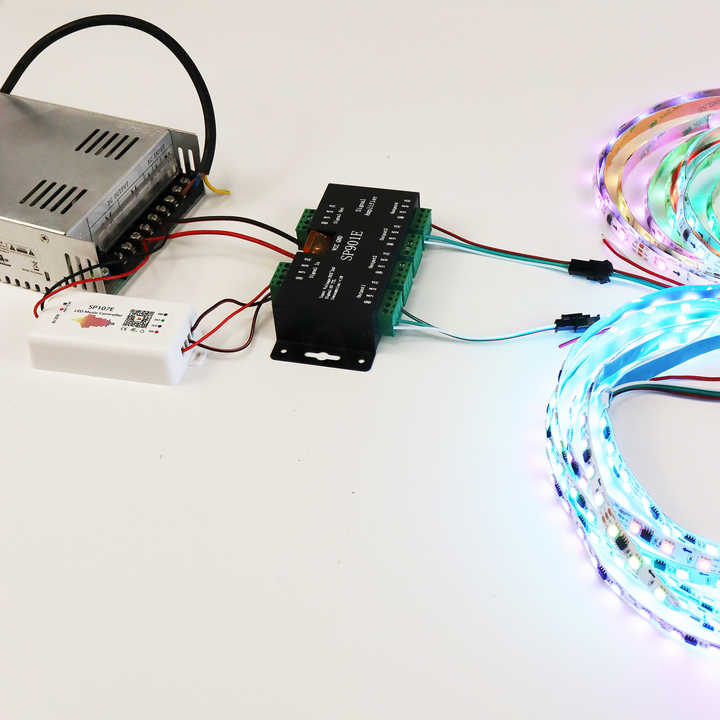Amplificateur de signal SPI SP901E DC5-24V pour bandes LED RGB à pixels adressables WS2811 WS2812B WS2813, répéteur de signal pour ruban Dream Color