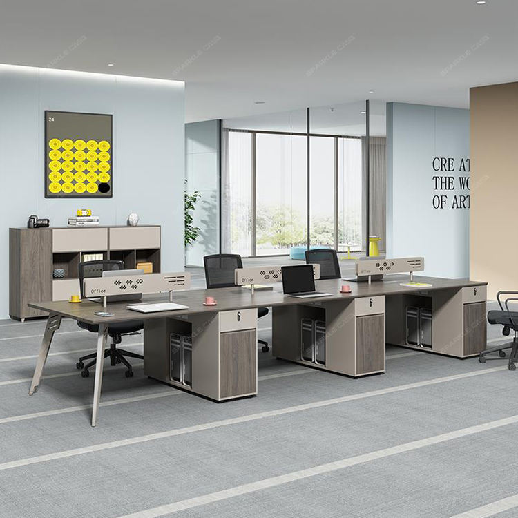 Bureau convertible double face moderne pour six finitions étincelantes extensibles pour les gestionnaires et le personnel financier en bois