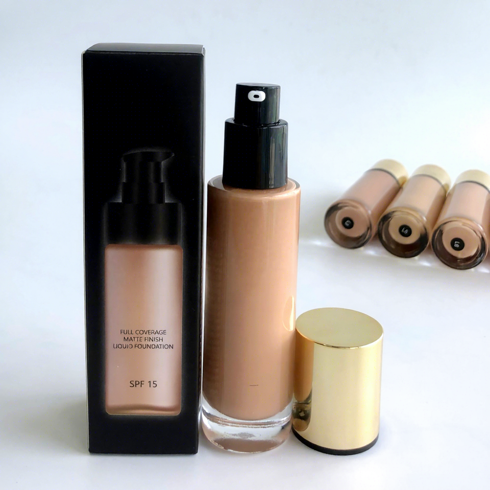 Fond de teint liquide imperméable à l'eau douce longue durée à couverture complète SPF 15 30ml correcteur de contrôle de l'huile blanchissant les pores marque privée