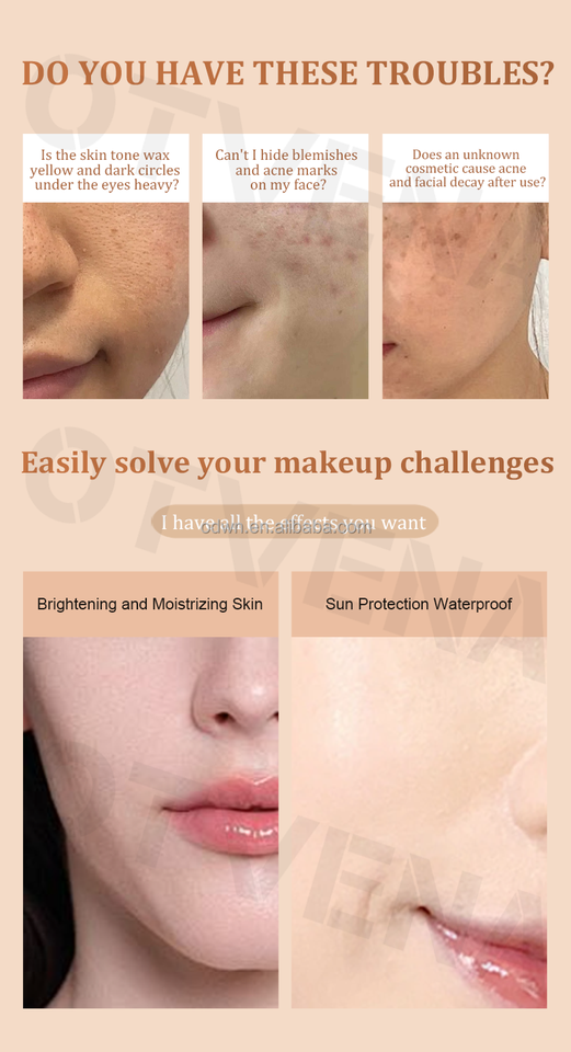 FPS 50 Contrôle de l'huile Couverture complète Imperméable à l'eau Couleur correcte Finition naturelle Fond de teint liquide CC Crème