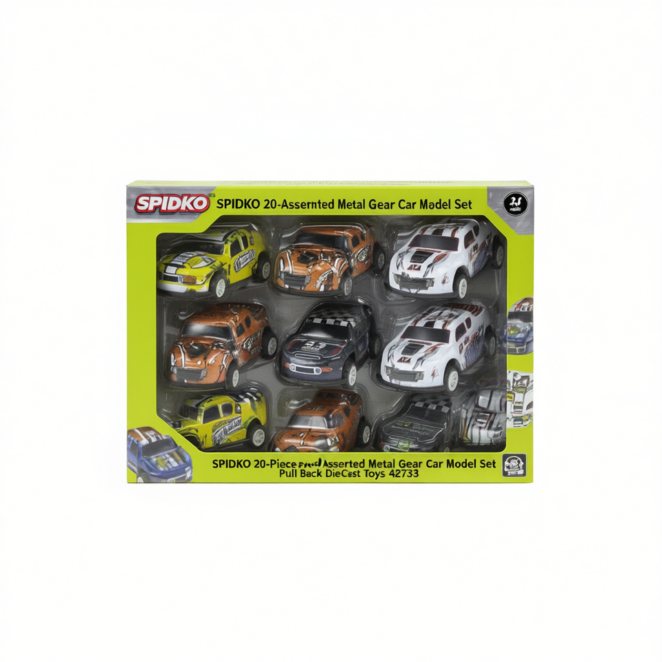 SPIDKO Ensemble de 20 modèles de voitures en métal assortis, jouets moulés sous pression à rétrofriction 42733