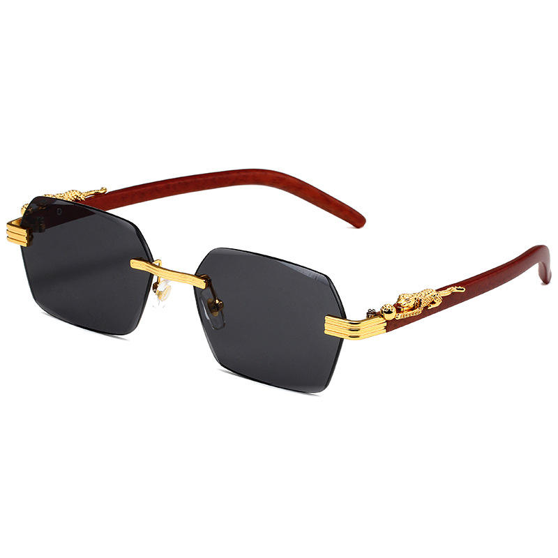 Lunettes de soleil polygonales sans monture SPUKA 5370 pour hommes et femmes, accent léopard, branches effet bois, protection UV400, logo personnalisé, vente en gros