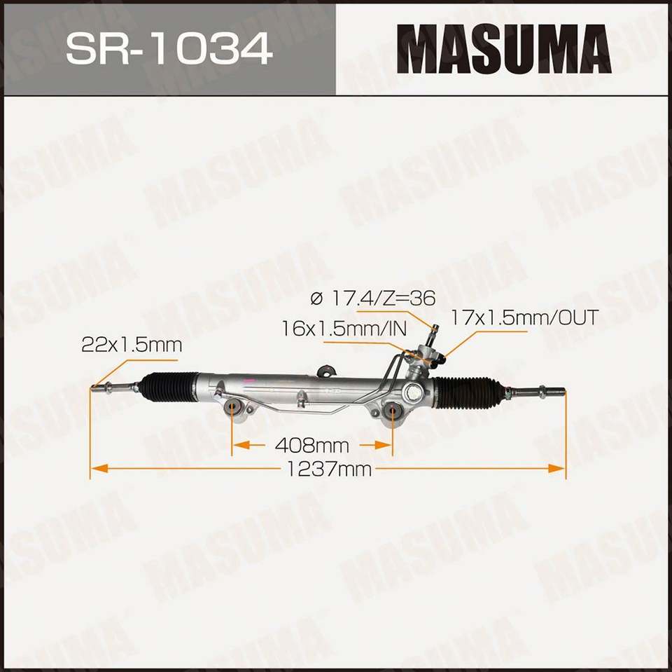 Guide technique de direction MASUMA SR-1034, spécifications, paramètres, dimensions, dessin, fiche technique, boîte de direction