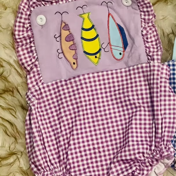 Combinaison sans manches pour bébé fille, imprimé poisson à carreaux rouges, vente en gros, SR3414 RTS