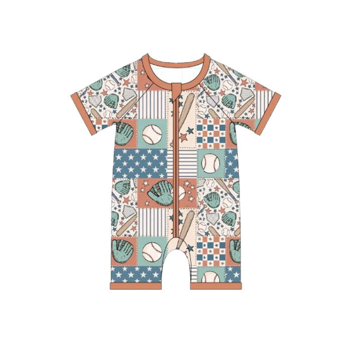 SR3614 CUSTOM Infant baby green dinosaur print kids wholesale romper short sleeve jumpsuit bubble