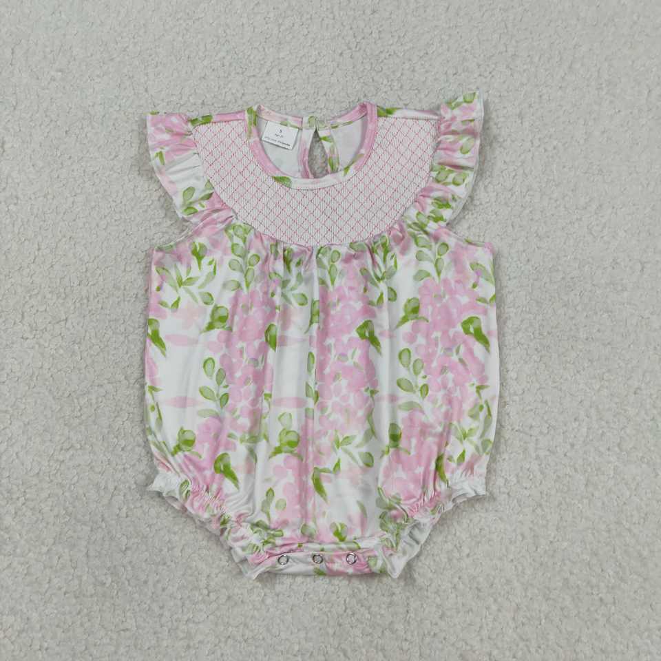 Combinaison bébé fille SR3805 RTS à fleurs roses et manches volantées – Ensemble en coton et élasthanne pour la vente en gros