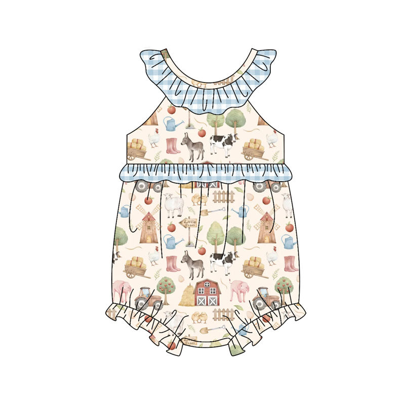 SR3851 CUSTOM Infant baby black white plaid cherry print kids girl wholesale romper sleeveless jumpsuit child cute sleeper set