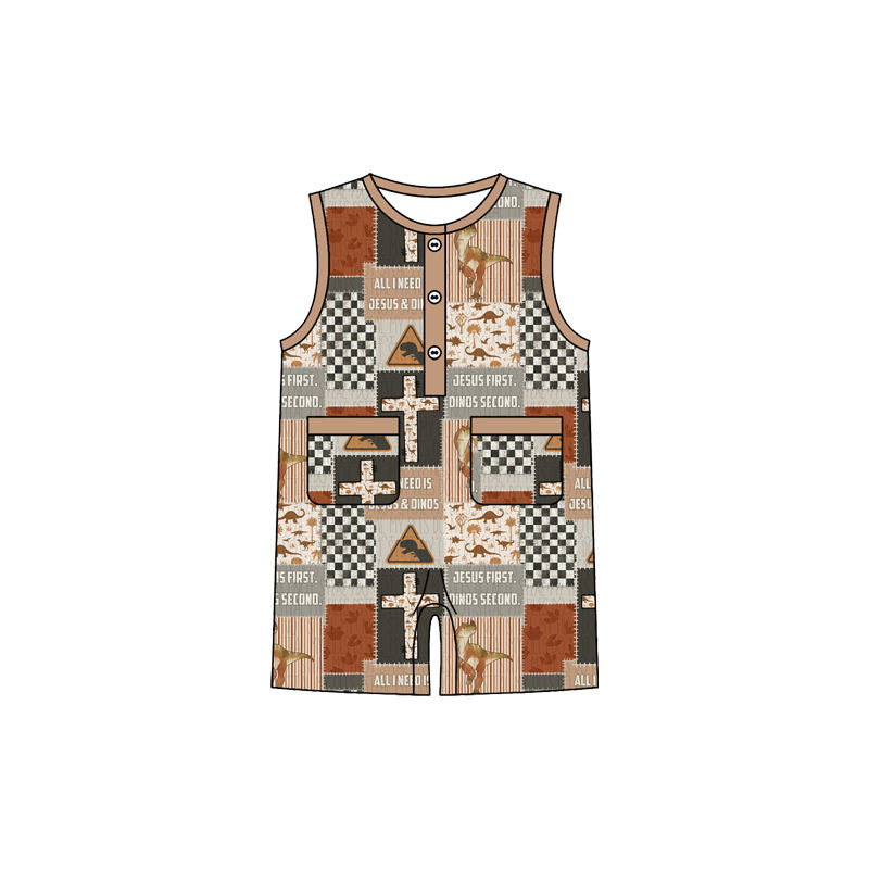 Combinaison barboteuse sans manches pour bébé fille, imprimé croix marron, ensemble de bulles pour bébé, SR3948