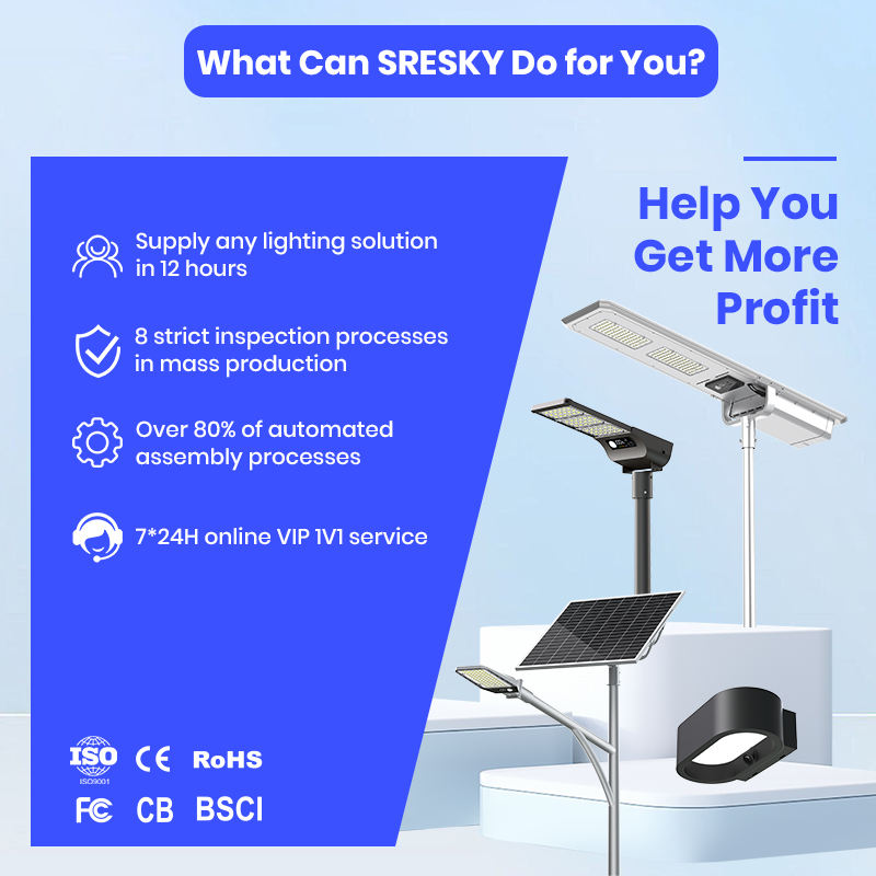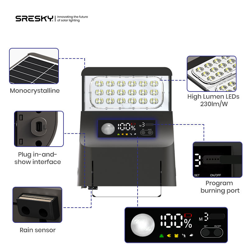 Lampadaires solaires SRESKY avec panneau solaire, lampadaire solaire extérieur pour les parkings