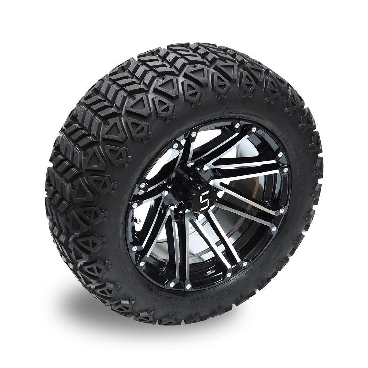SRGCTW-404 14 "roue et pneu de chariot de golf usinés/noir brillant 14" jante 22*10-14 pneu tout-terrain