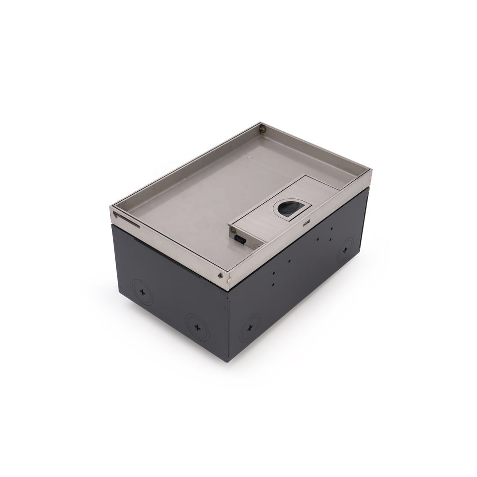 Boîte de sol encastrée SS304 avec double port d'alimentation et de données pour usage de bureau avec boîte revêtue de poudre