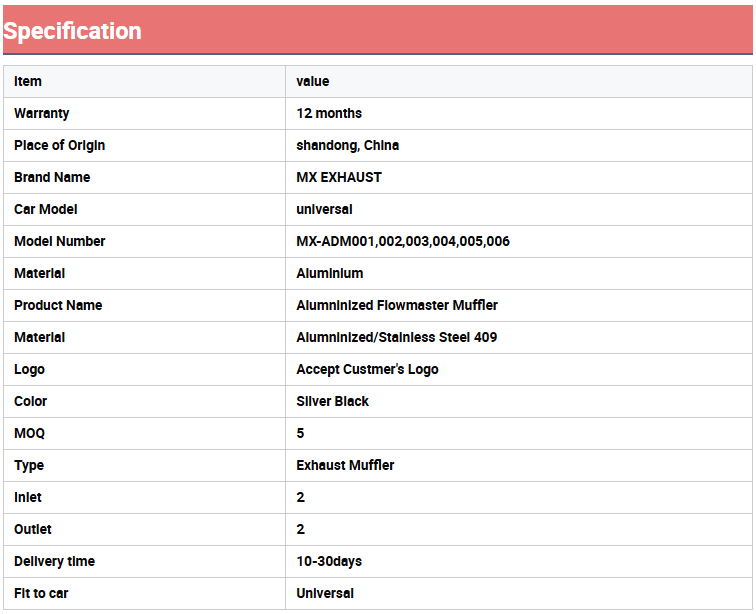 Nom du produit:Silencieux Flowmaster aluminisé
