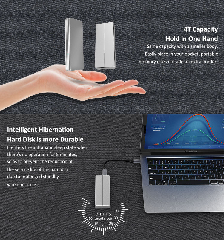 Boîtier de disque dur externe SSD Thunderbolt 3, coque en aluminium, 40 Gbps, 4 To, PCIE M.2 Nvme Ssd