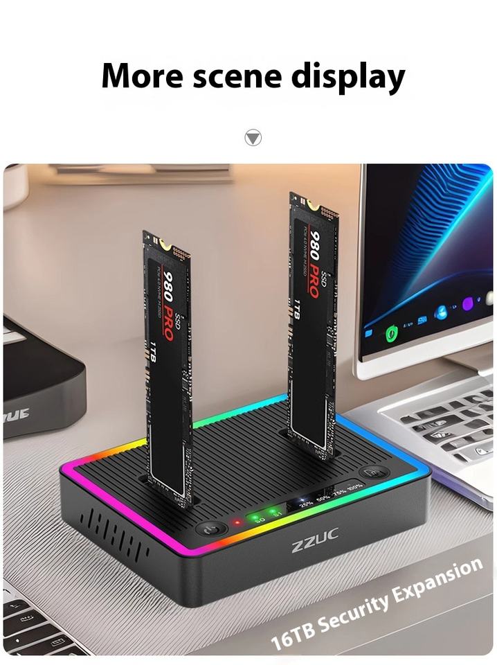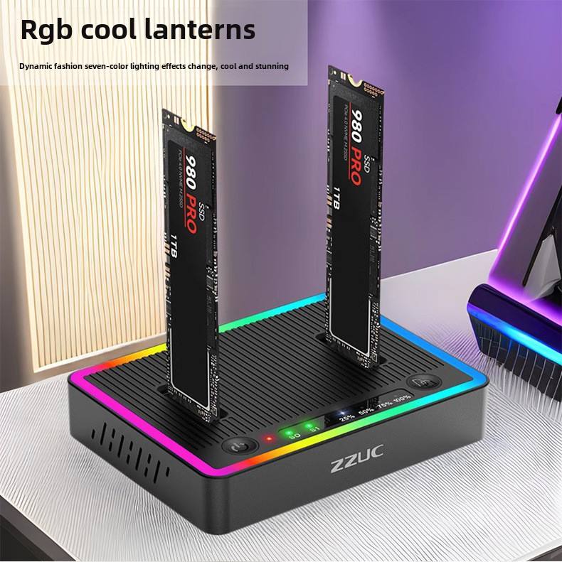 Station d'accueil SSD Nvme haute vitesse Cloner USB C sans outil vers double baie hors ligne M2 Clone Duplicator Enclosure