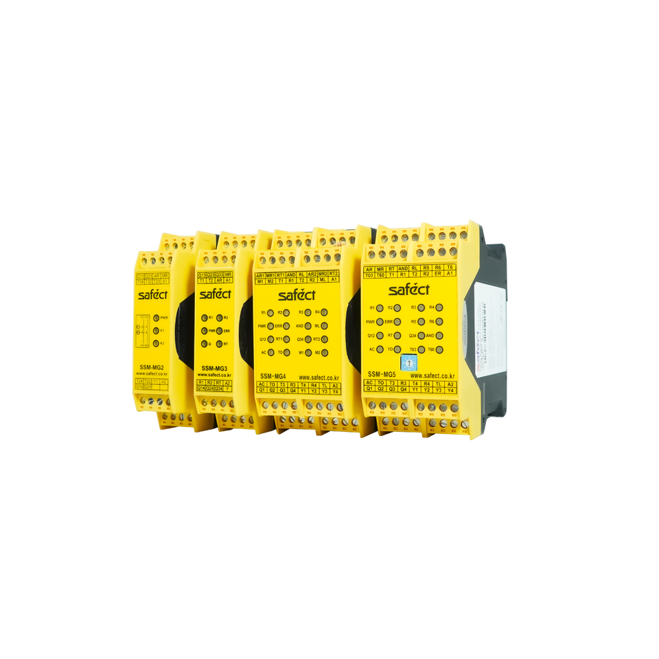 Unité de contrôle de sécurité SSM-MG3 avec 3 sorties NO + 1 sortie NPN et affichage de l'état LED pour les systèmes d'arrêt d'urgence industriels
