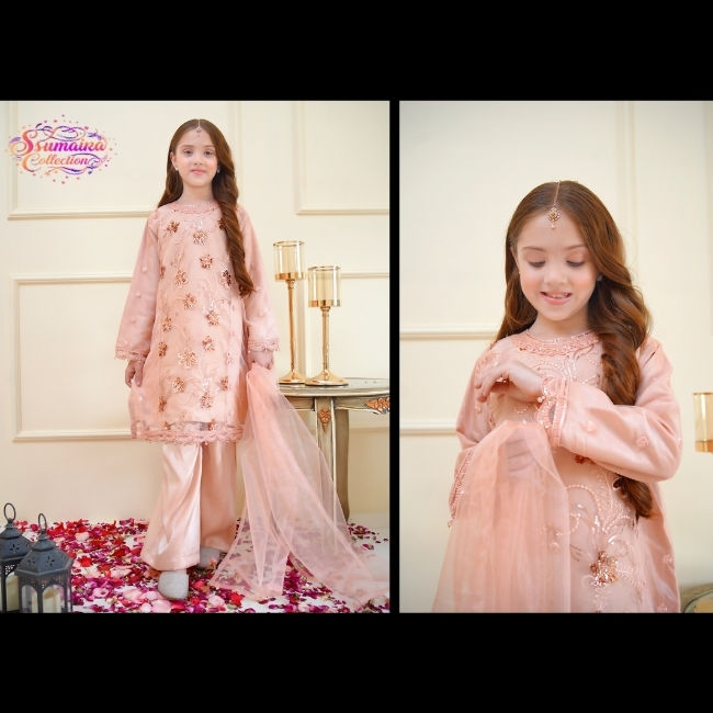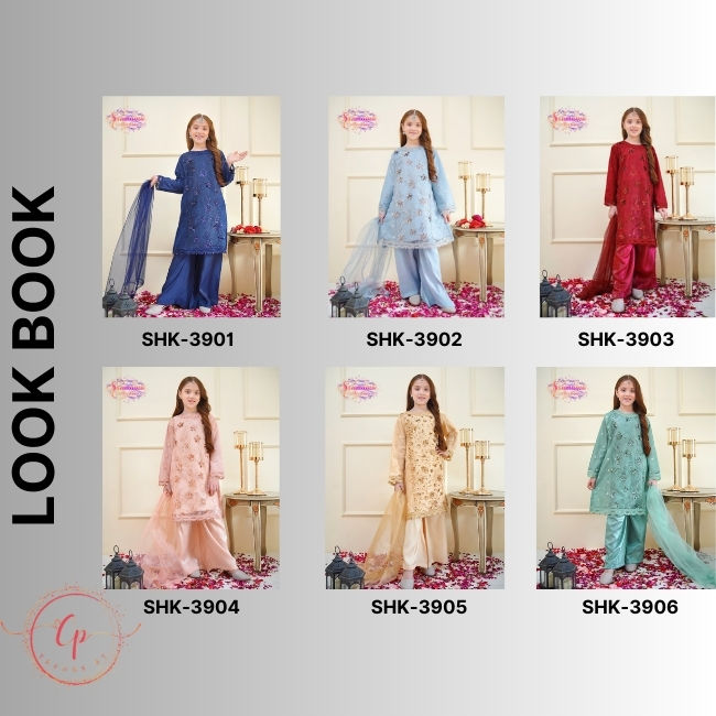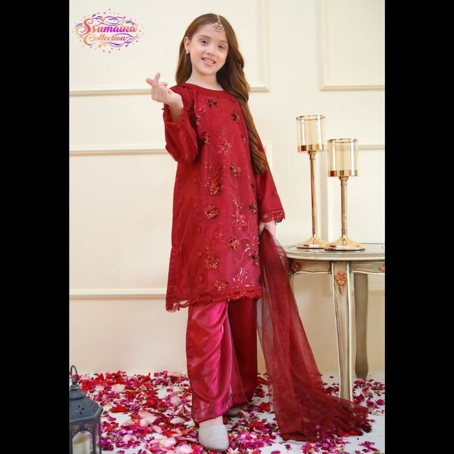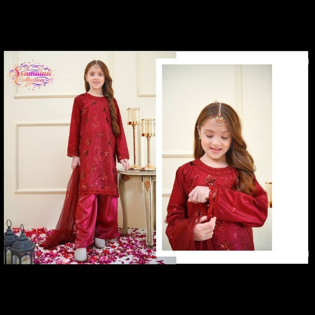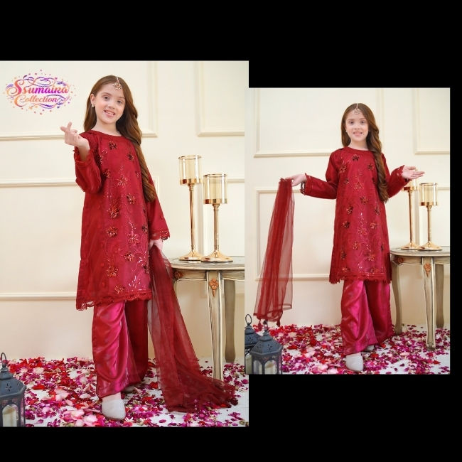 SSUMAIRA COLLECTION Collection de costumes de fête pour enfants Chemise brodée en coton imprimé de style ethnique indien Coton uni élégant