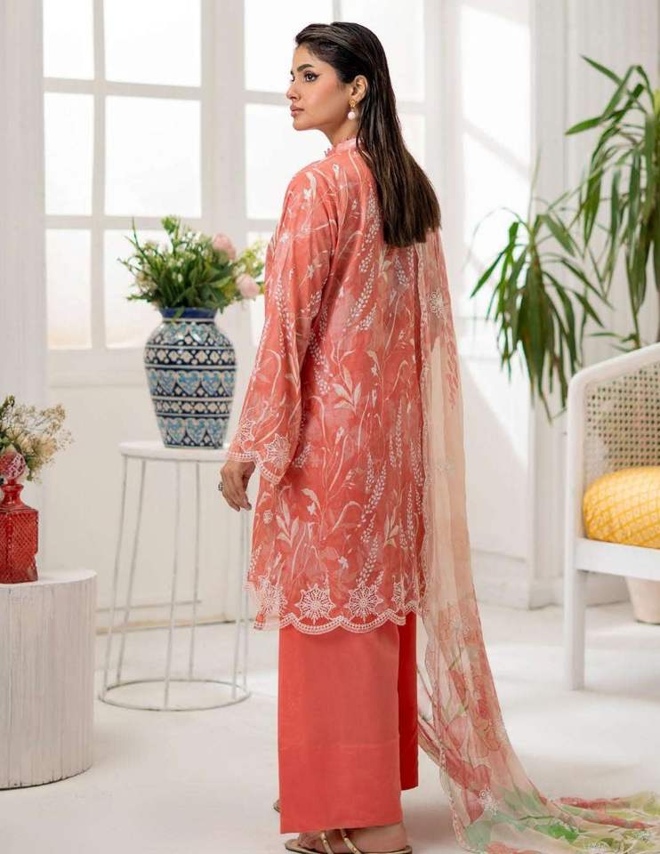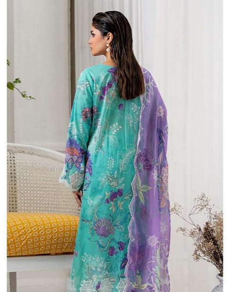 Collection SSumaira : Ensemble Salwar Kameez pour femme, imprimé numérique vibrant, avec broderie en organza et bas en cambric, prêt pour les fêtes
