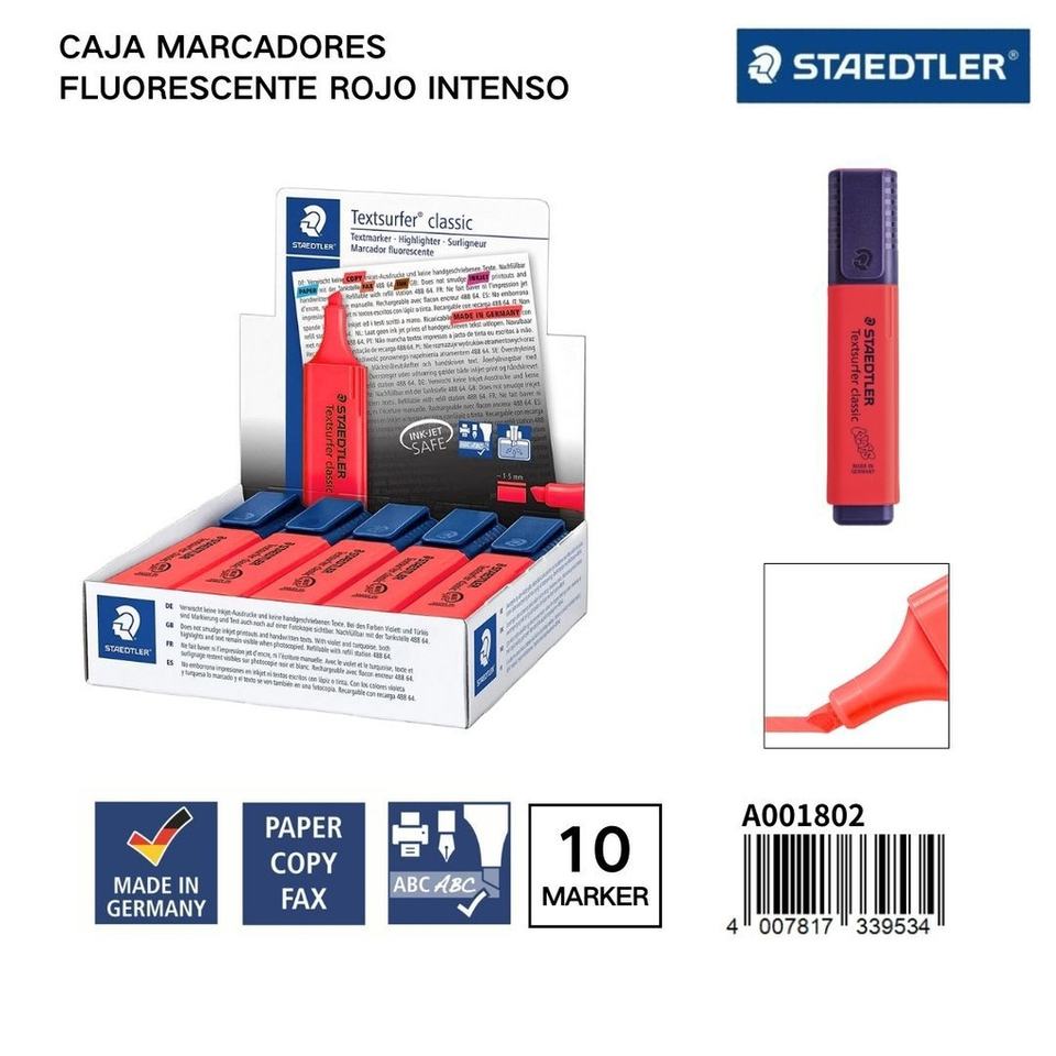 STAEDLER Marqueurs fluorescents 1/5MM Boîte 10 Rouge Intense