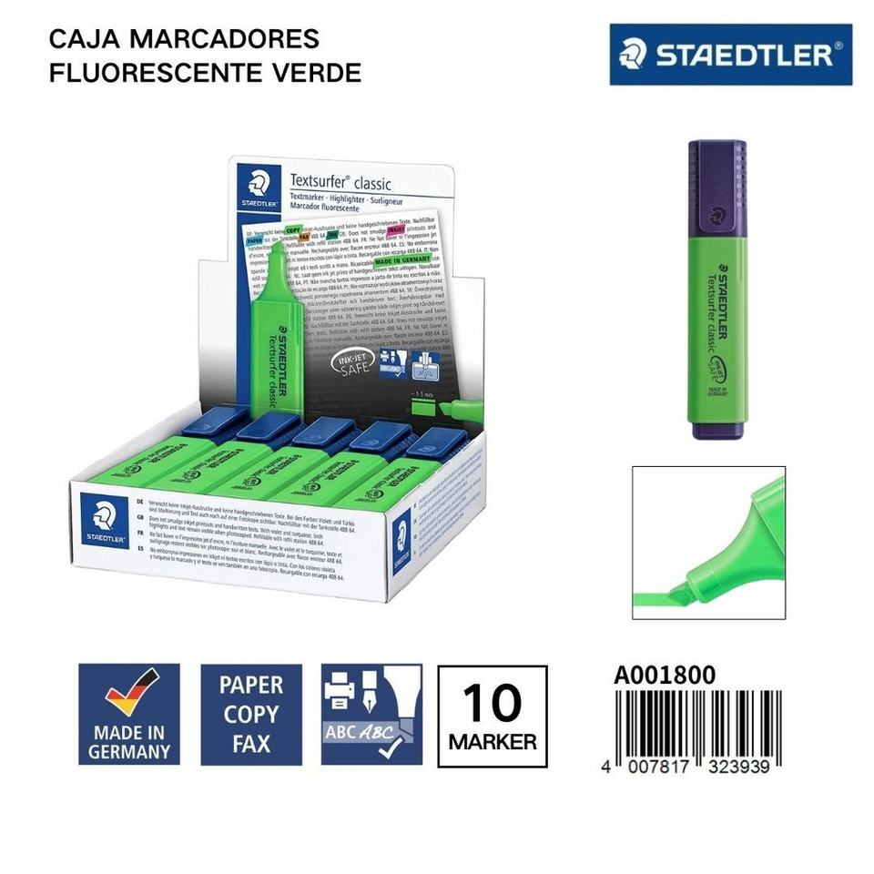 STAEDLER Marqueurs fluorescents 1/5MM Boîte de 10 Verts