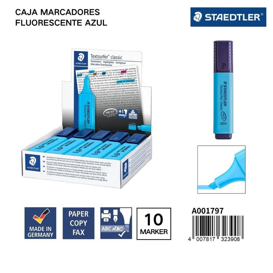 STAEDLER Marqueurs fluorescents 1/5MM Boîte de 10 Bleu