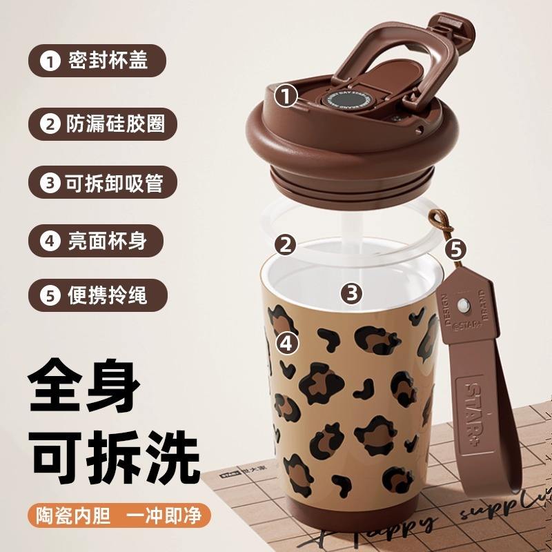 STAR + Tasse Thermos Café Chaud Isolé en Acier Inoxydable Tasse Thermique en Verre Bouteille de Sport avec Compartiment Eau Blanc