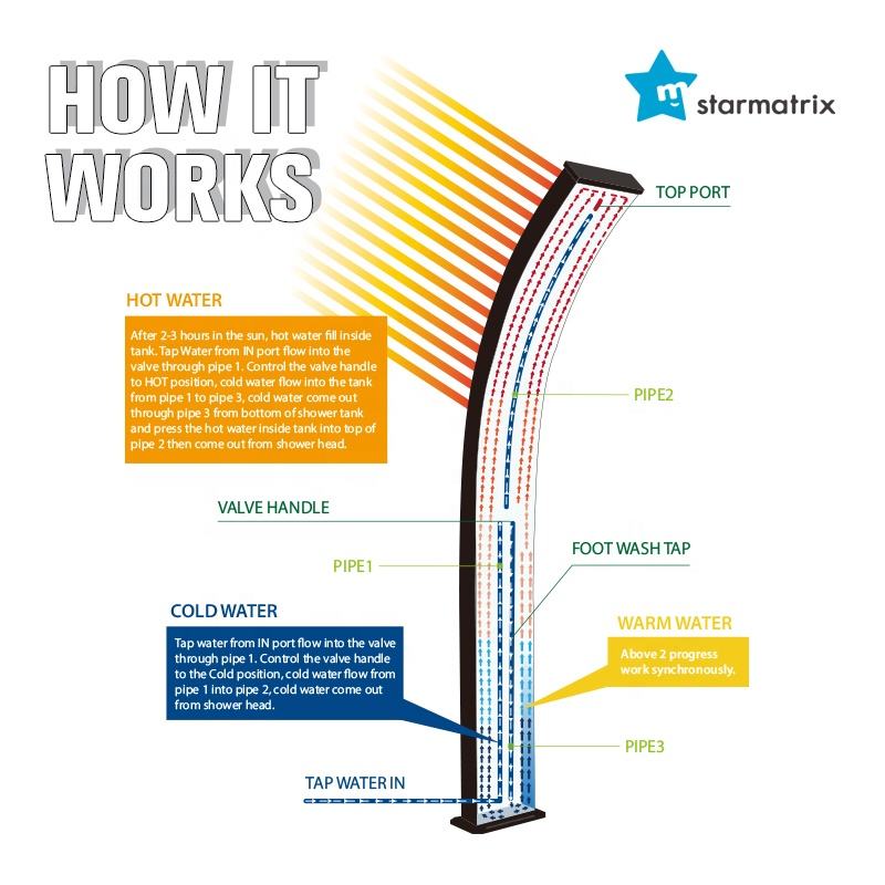 Douche solaire STARMATRIX SS0970, douche solaire en aluminium pour piscine, 40l, douche couverte pour piscine