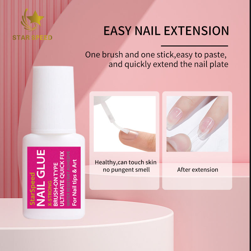 STARSPEED 8g Colle à ongles non toxique à tenue forte pour faux ongles, adhésif longue durée pour capsules d'ongles, colle à ongles à appliquer au pinceau, produit phare
