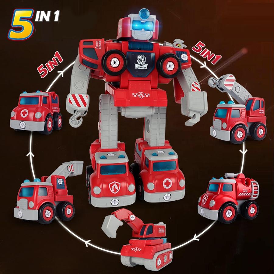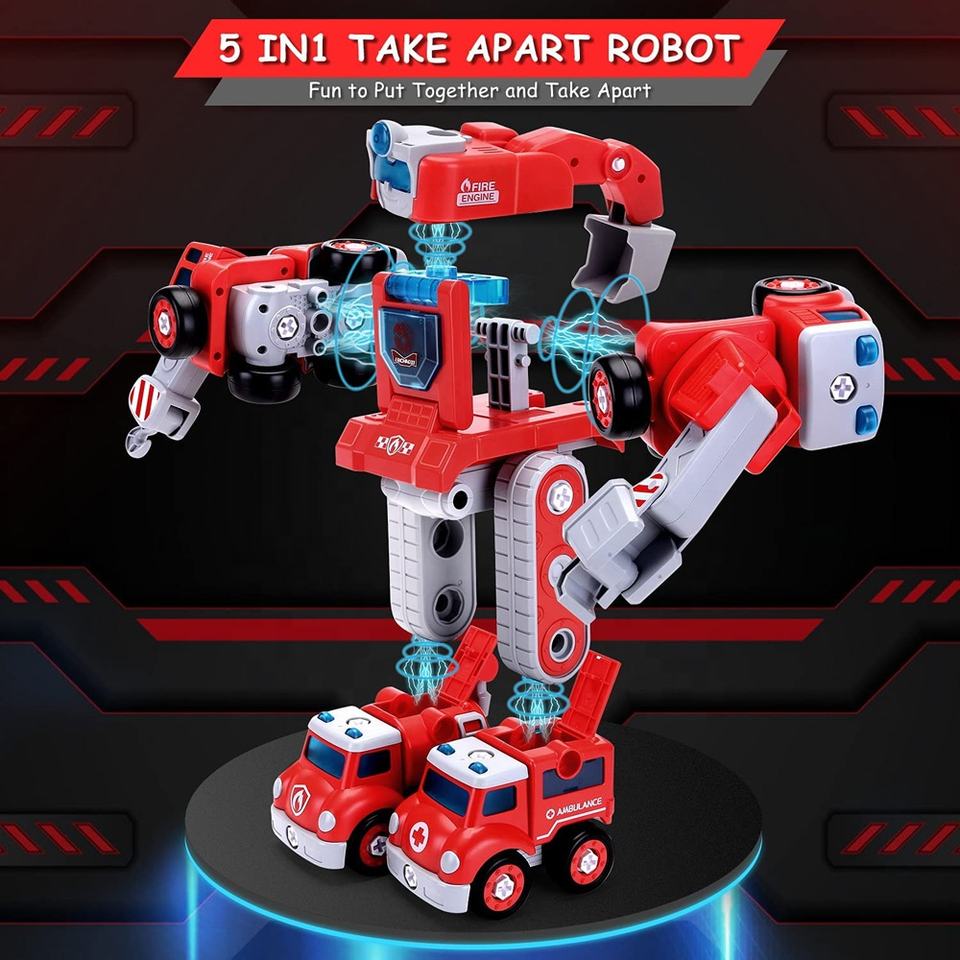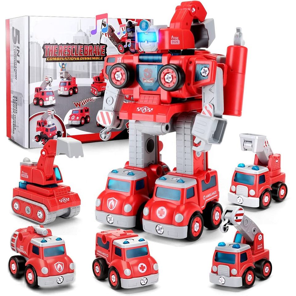 STEM Kids Building Toys 5 in 1 Fire Rescue Truck Construction Transform Car Take Apart Robot Toys Vehicle for Kids
