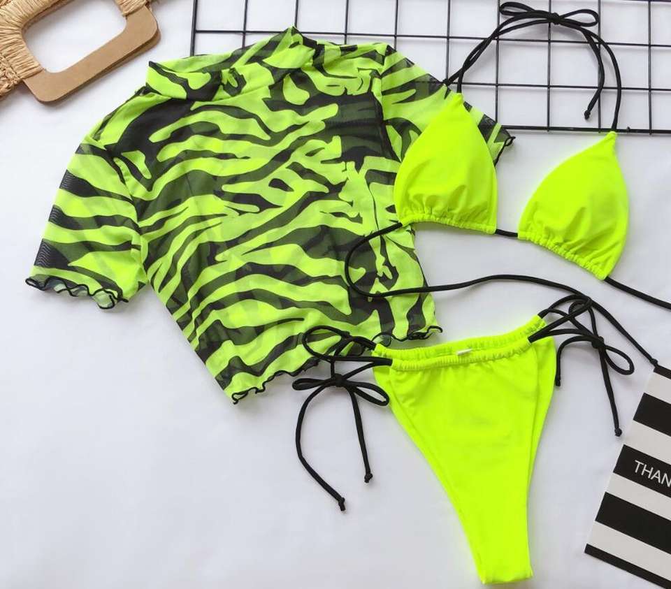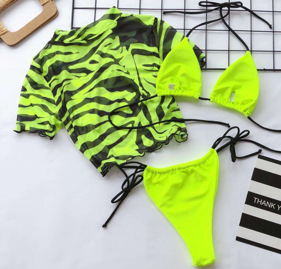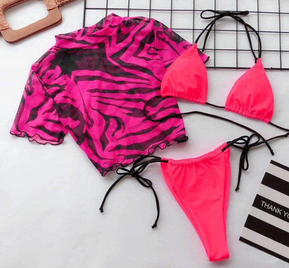 Maillot de bain en maille avec doublure pour femmes, vêtements de plage, Bikini, sans couture, à manches courtes, disponible en 3 couleurs, populaire, collection