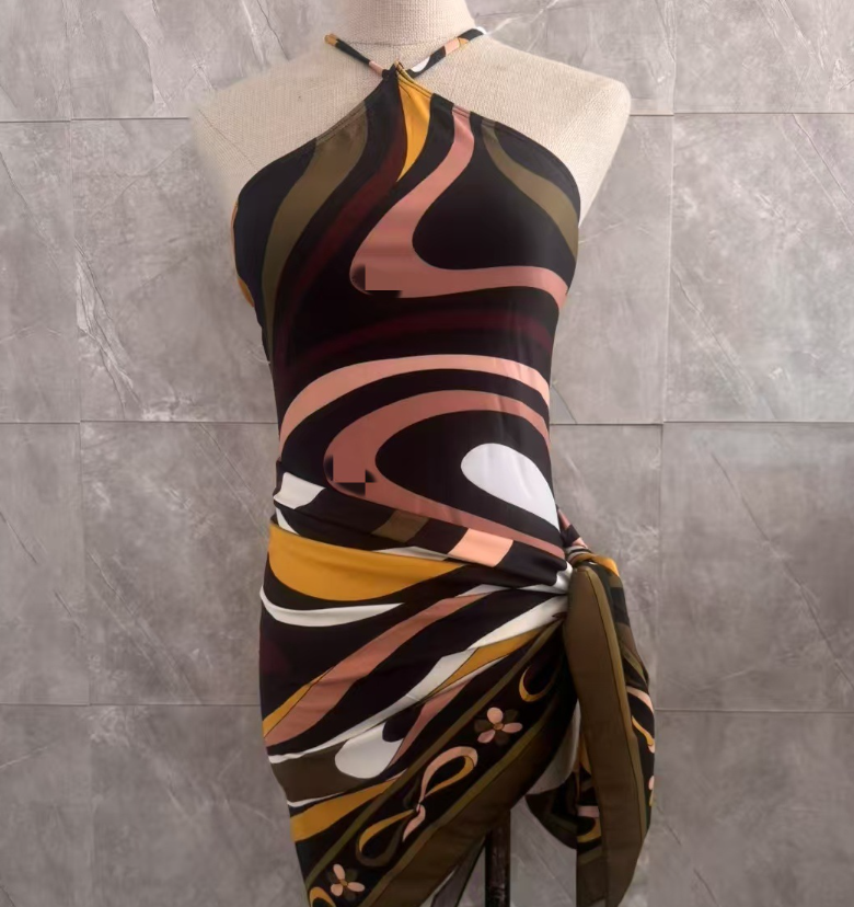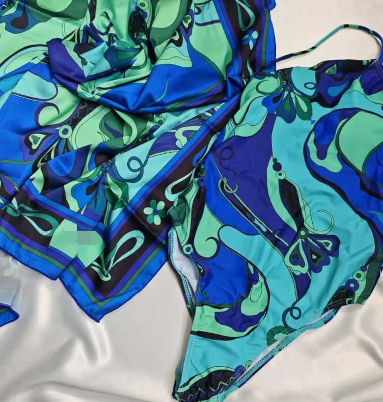 Maillot de bain trois pièces de marque célèbre STOCK Fashion avec foulards et bandeau, design sexy pour femme