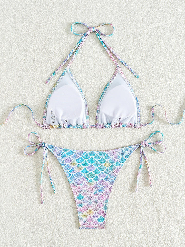 STOCK Triangle Op Basic Bikini Sirène Imprimé Cravates Détails Maillot de bain brésilien pour femme Maillot de bain