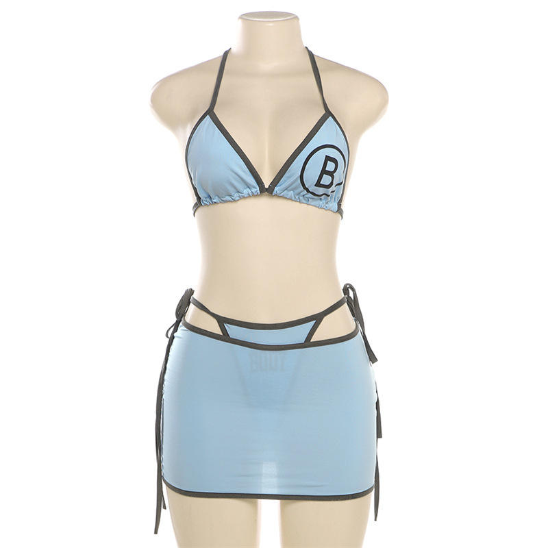 STOCK Deux Couleurs Sans Pad Triangle Top Basique String Bikini Femmes 3 Pièces Maillots De Bain Plage Jupe CoverUp