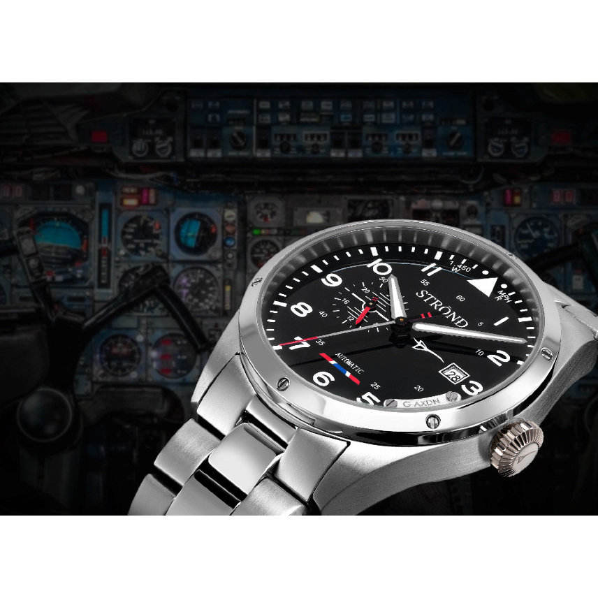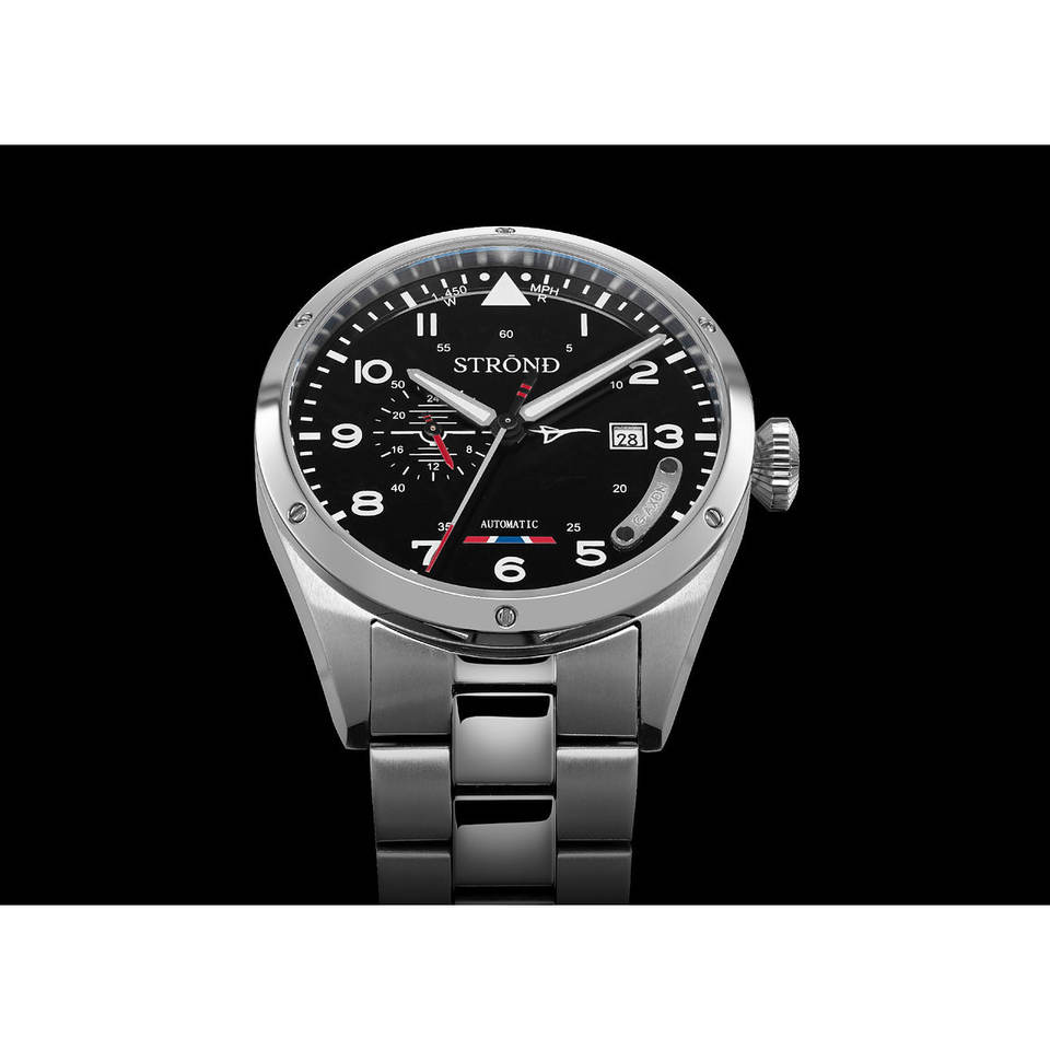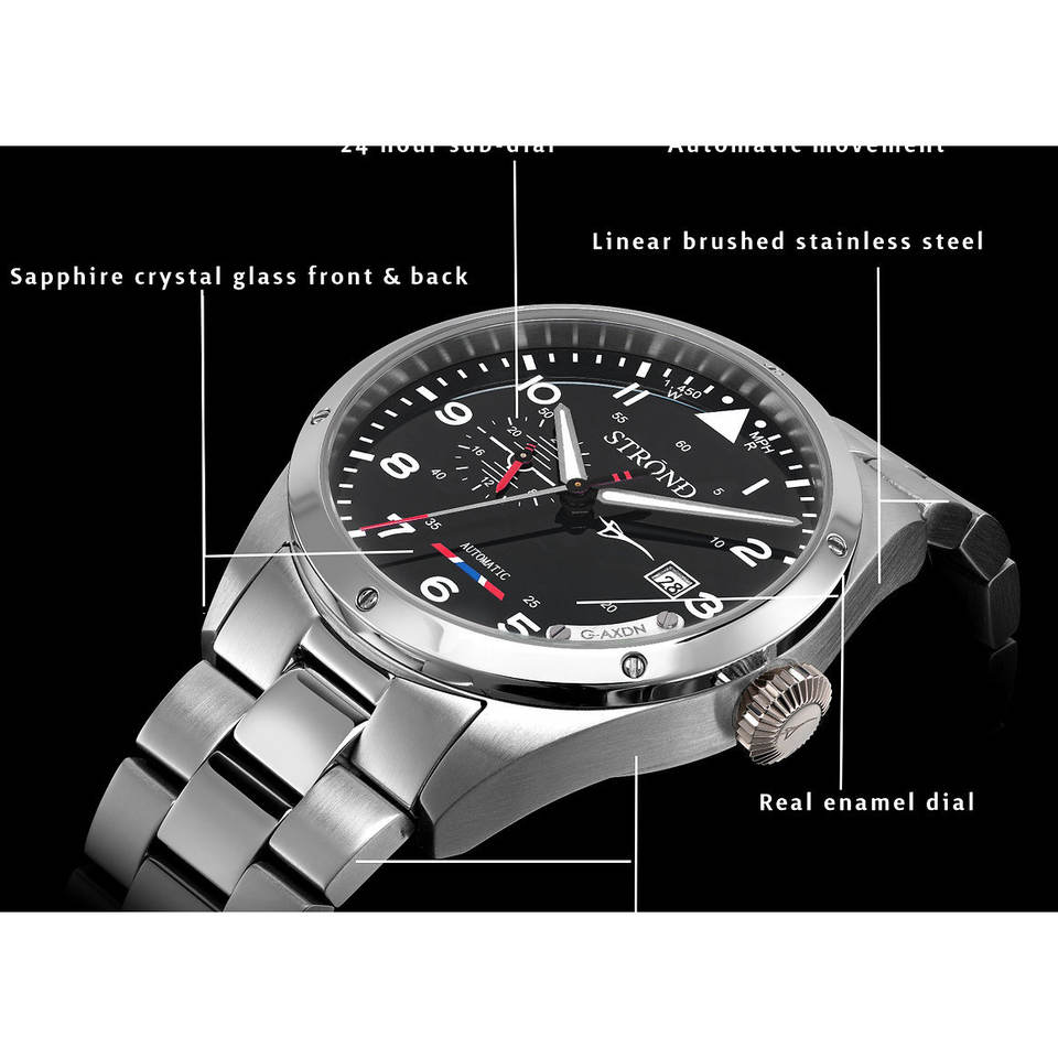 STROND Concorde 24H Montre à remontage manuel bleu marine avec fonction luminescente, mouvement Seiko, cadran 41 mm, verre saphir, étanche 10 bars