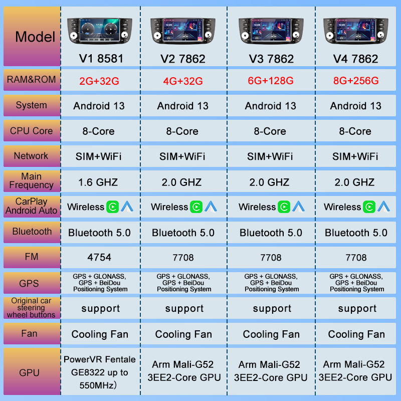 Fonction:Lien de miroir, Android auto, Commande au Volant, DSP, CarPlay, Lumières colorées
