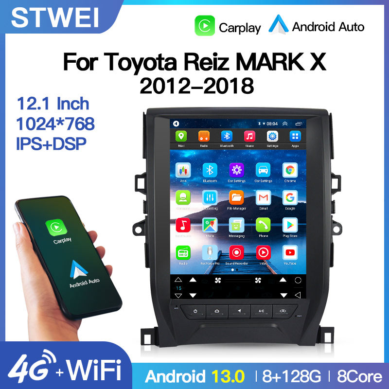 Autoradio multimédia STWEI pour Toyota Reiz MARK X 2012-2018, GPS automatique, enregistreur de bande, Carply, style Tesla, Android 13, Navi BT