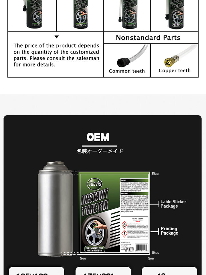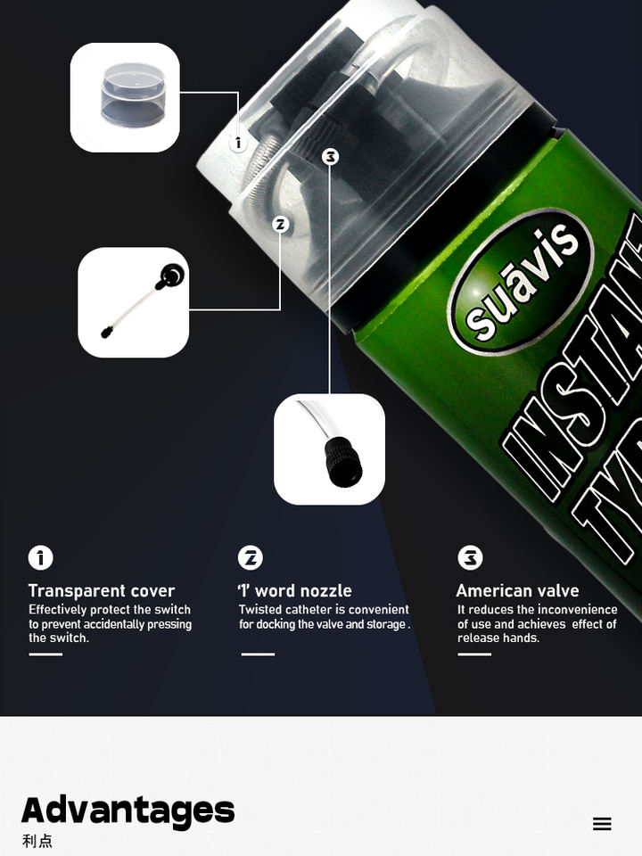 SUAVIS 650ML Liquide de réparation d'urgence pour pneus Agent étanche pour gonfler automatiquement les pneus rapidement L'Indonésie et le Cambodge ont des stocks