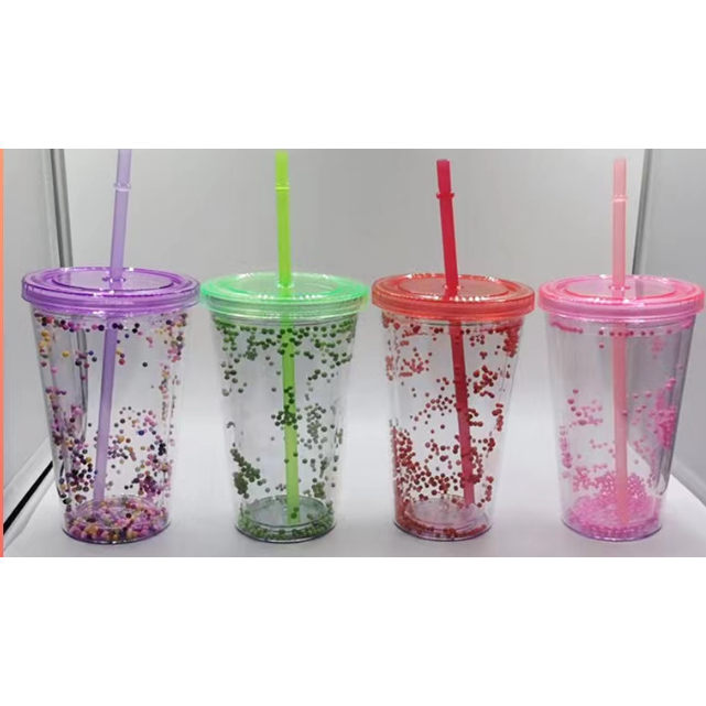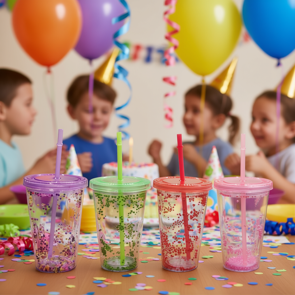 Gobelet à bulles SUDA RESOURCE SA DE CV 450 ml, vaisselle colorée pour fêtes, avec couvercle plat, pour événements pour enfants, pas besoin de glace