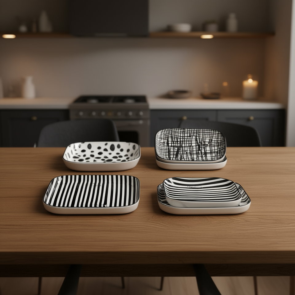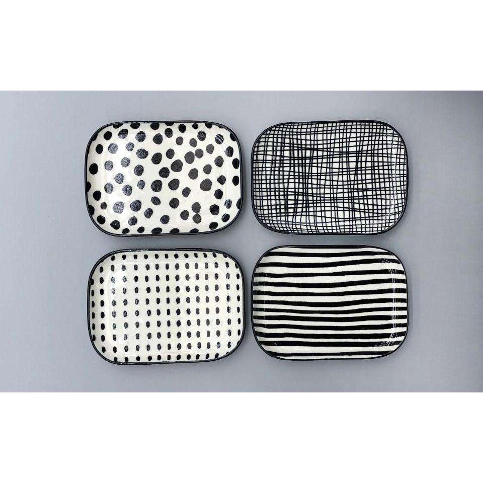 Ensemble d'assiettes en céramique SUDA RESOURCE SA DE CV, rectangulaires, motifs points, rayures, grilles, peintes à la main, lavables au lave-vaisselle, pour la maison et la cuisine