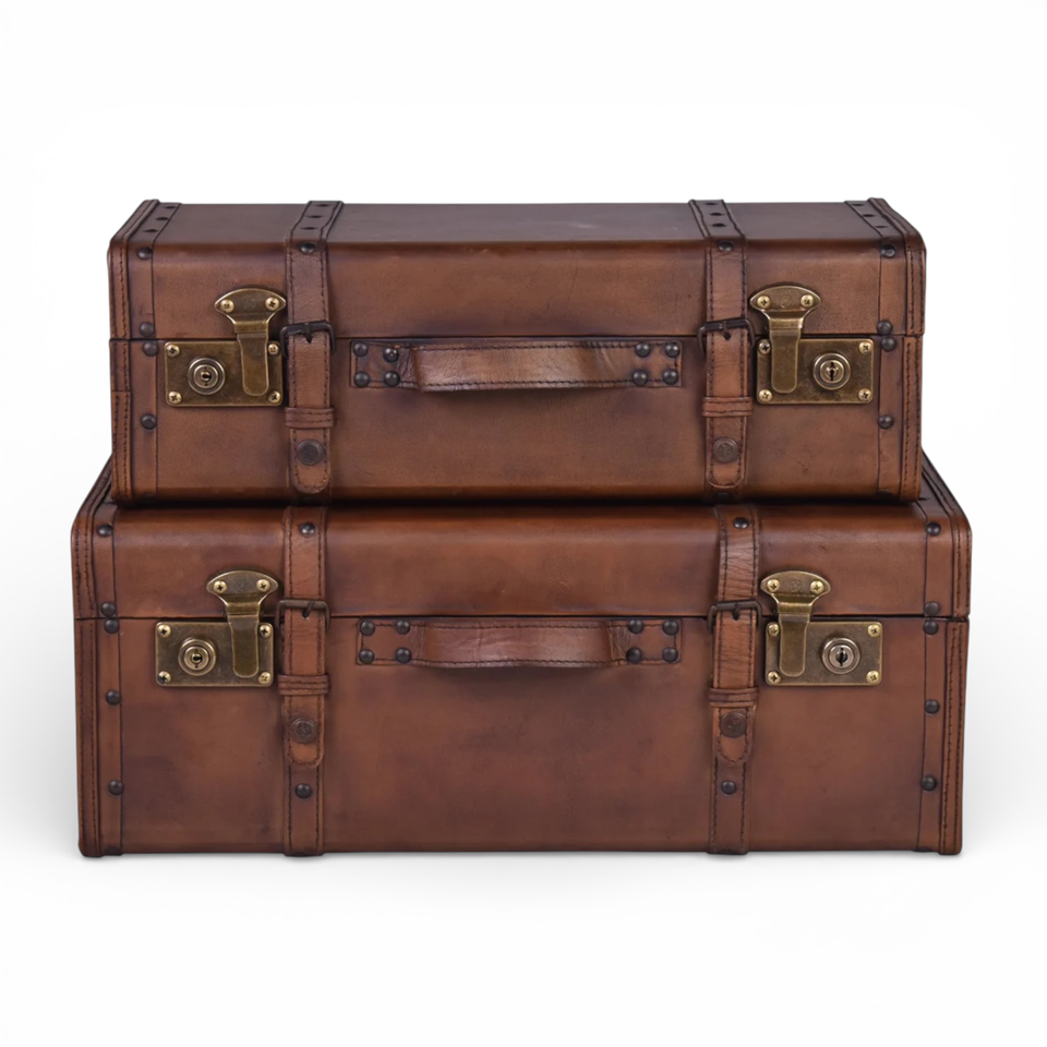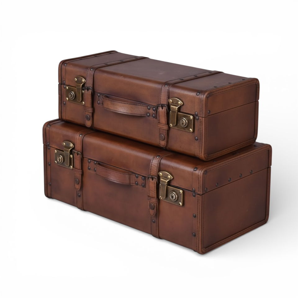 Valises - Lot de 2 valises vintage style rétro en cuir de vachette 100% durable, grande capacité, élégantes, classiques, luxueuses, modernes, pour affaires