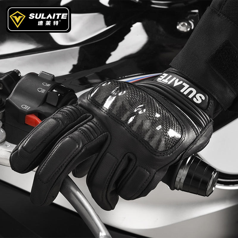 Gants de moto SULAITE, gants de course pour adultes unisexes, à doigts entiers, en fibre de carbone, respirants, pour l'été et l'hiver
