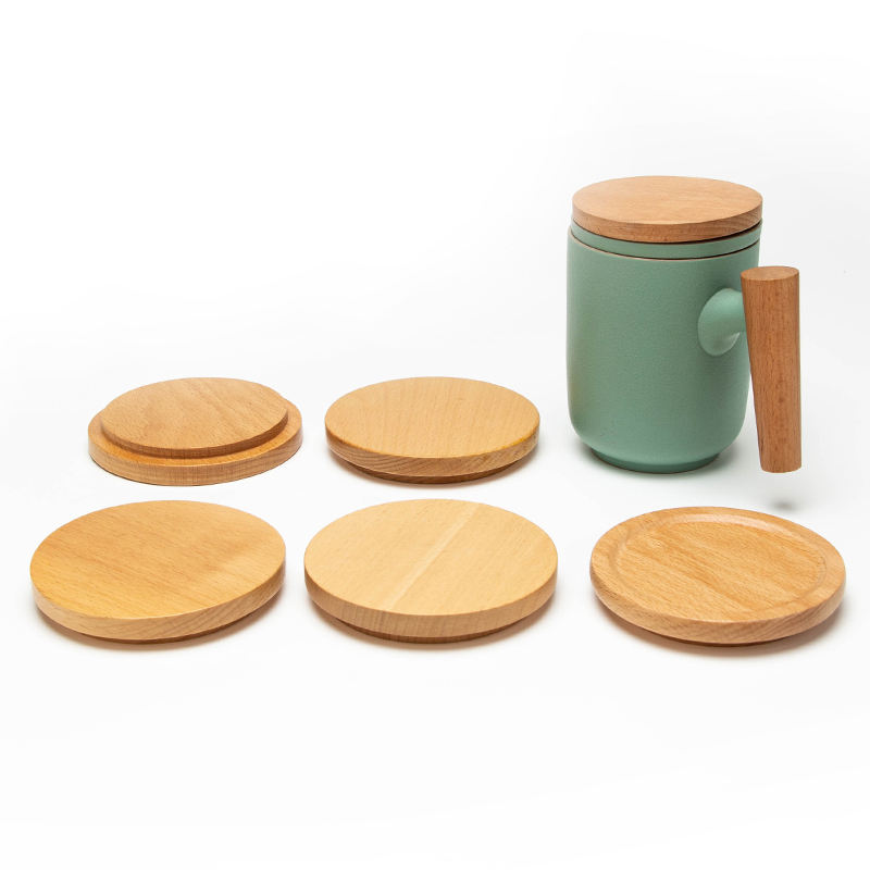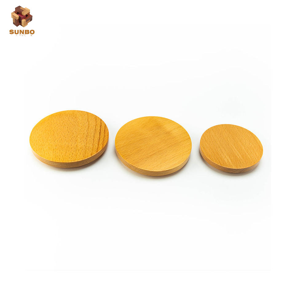 Couvercle de tasse en bois massif poli sur mesure SUNBO, fabriqué en bois d'acacia et de noyer avec anneau antidérapant en caoutchouc naturel