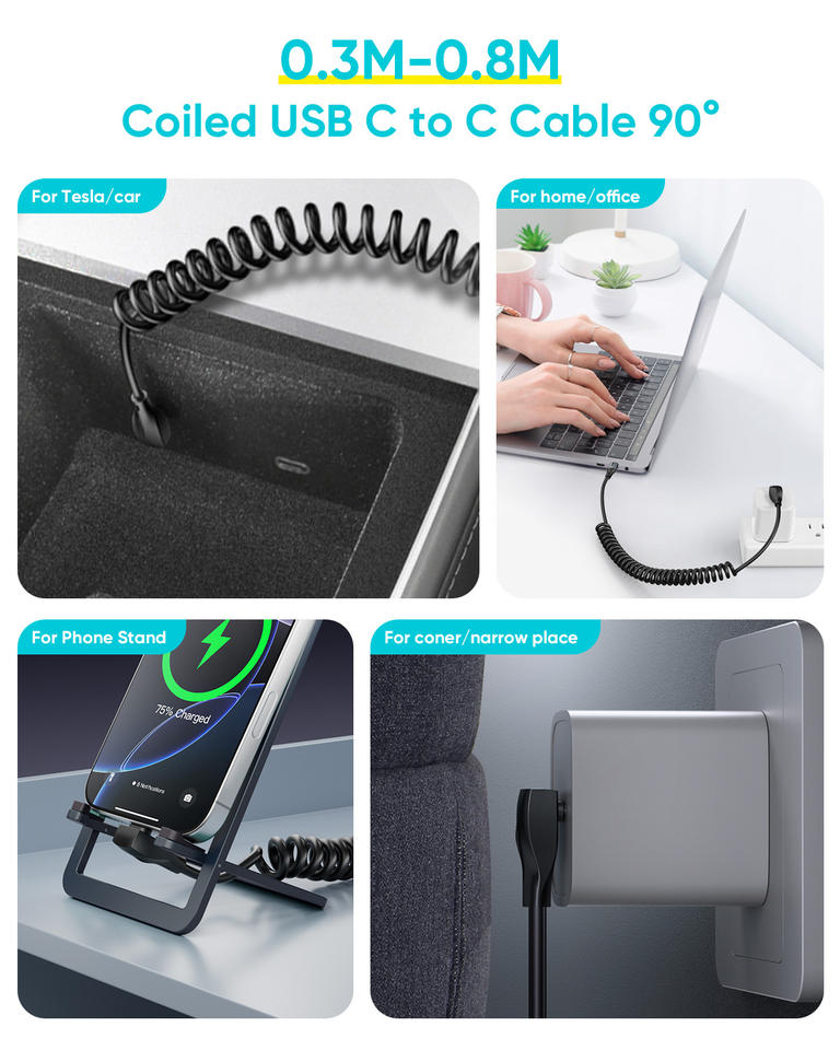 Câble de données rétractable SUNGUY 60W 3A Type-C à charge rapide pour téléphone portable, ordinateur portable, voiture et batterie externe - Câble personnalisé écologique