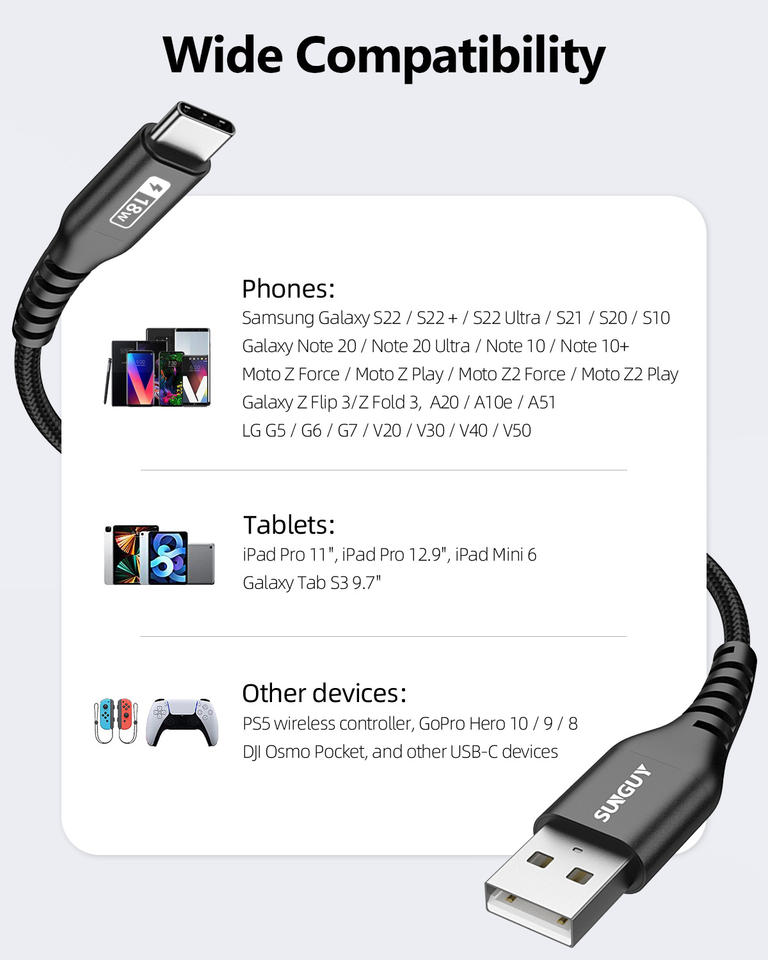 Câble USB vers Type-C SUNGUY, câble de charge rapide personnalisable, cavo di ricarica USB-C, chargeur de téléphone