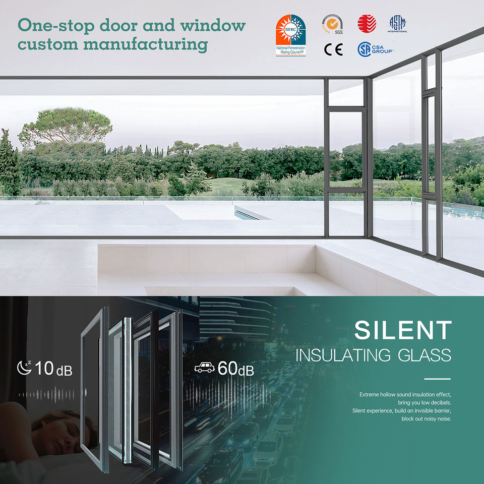 Fenêtres à battants en aluminium à rupture de pont thermique SUNGYE, résistantes aux ouragans, avec double vitrage trempé