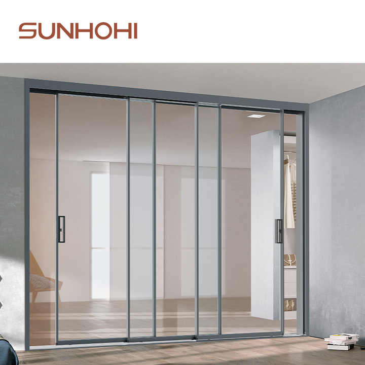 SUNHOHI cadre invisible lunette étroite porte coulissante en aluminium grand champ de vision triple tringlerie portes coulissantes en verre pour les maisons