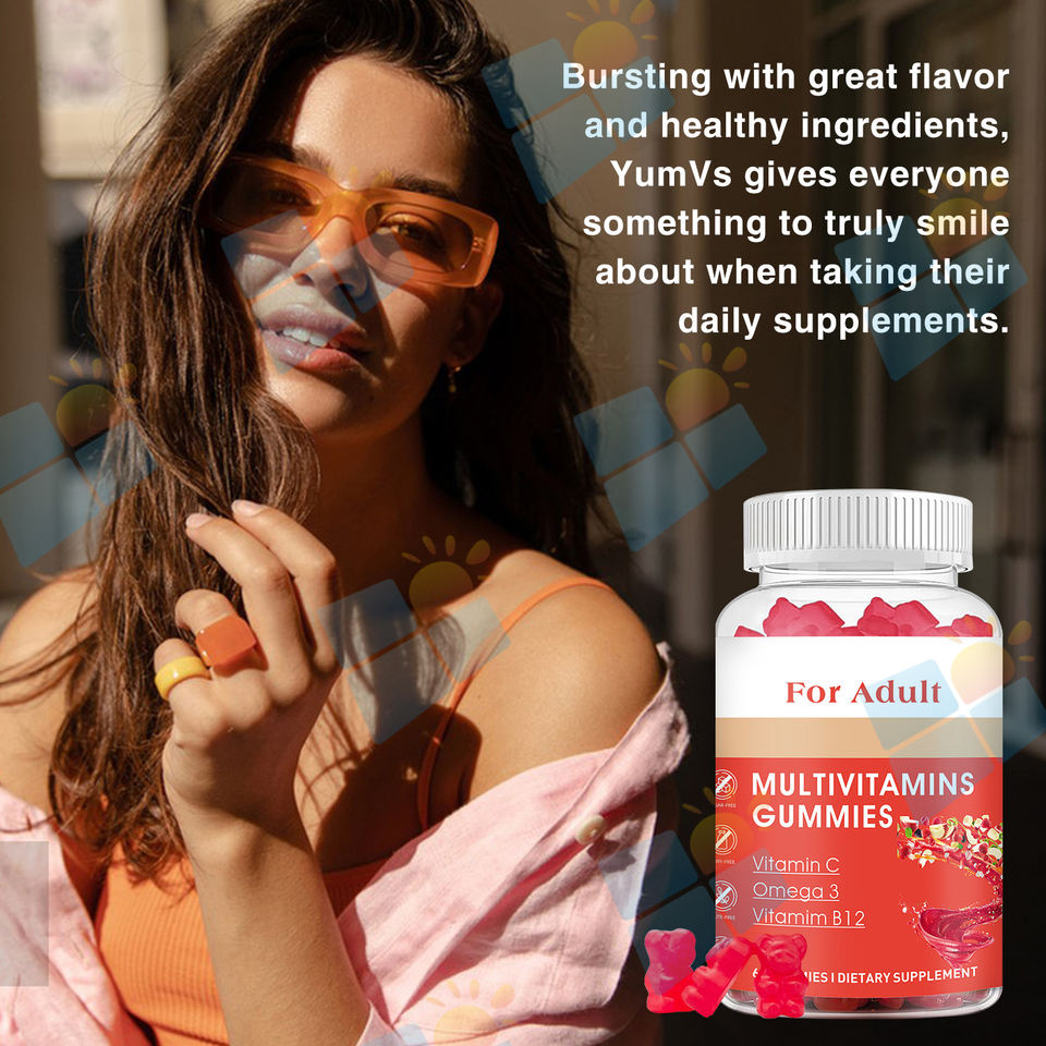 Complément alimentaire en gommes multivitaminées pour adultes SUNI OEM ODM, marque privée, sans sucre, à base de pectine, saveurs de fruits naturels, sans OGM, sans gluten