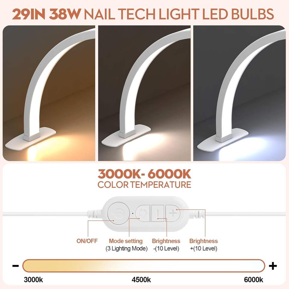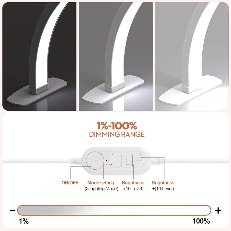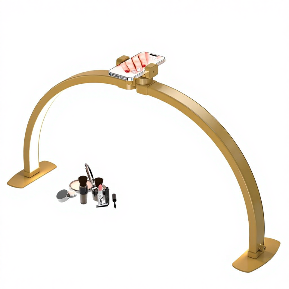 SUNKIN Premium Large Half Moon LED Foldable Arch Nail Desk Lamp with Phone Stand for Manicure Handicraft Lighting (Golden)