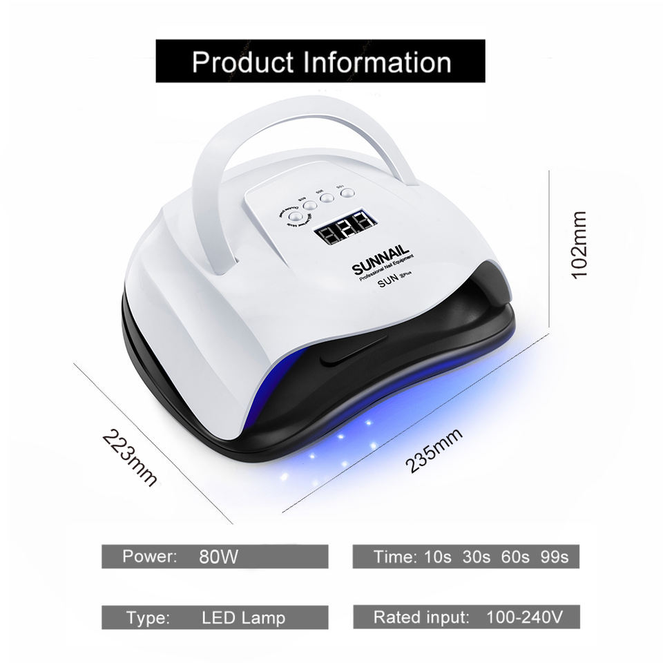 SUNNAIL 80W UV Lamp SUN X PLUS LED Nail Dryer for Curing All Gel Polish Manicure with Automatic Sensor