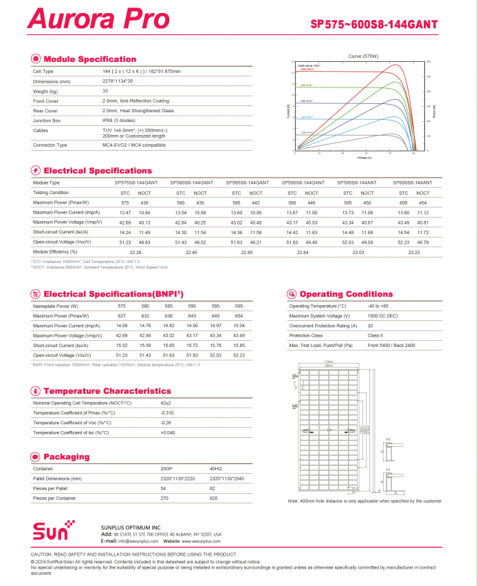 SUNPLUS 590W Module de panneau solaire double verre bifacial de type N 590W Panneau solaire à usage résidentiel avec double verre