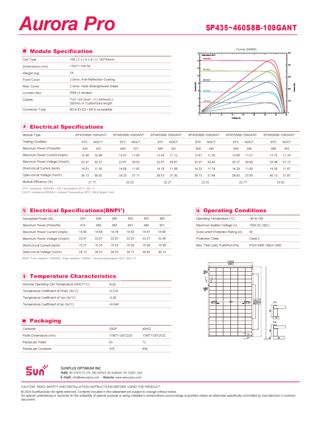 Panneau solaire bifacial monocristallin SUNPLUS pour 450W